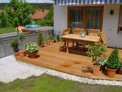 Die Gemütlichkeit einer Holzterrasse lädt zum verweilen ein und bildet einen weiteren wichtigen Raum in der eigenen grünen Oase.