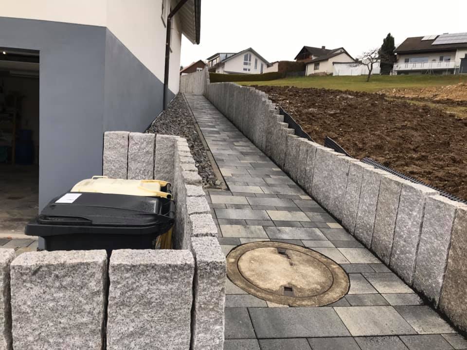 Umgestaltung eines Hausgartens mit Natursteinen.